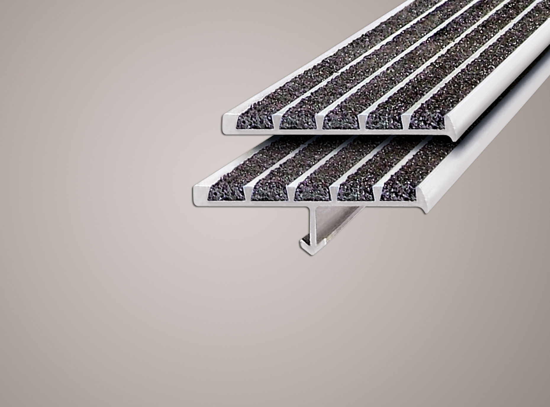 Supergrit Treads Provide a heat-treated, corrosion-resistant, extruded aluminum base with satin/lacquered finish. The use of diamond-hard aluminum oxide in the filler ensures long tread life under heavy pedestrian traffic use.