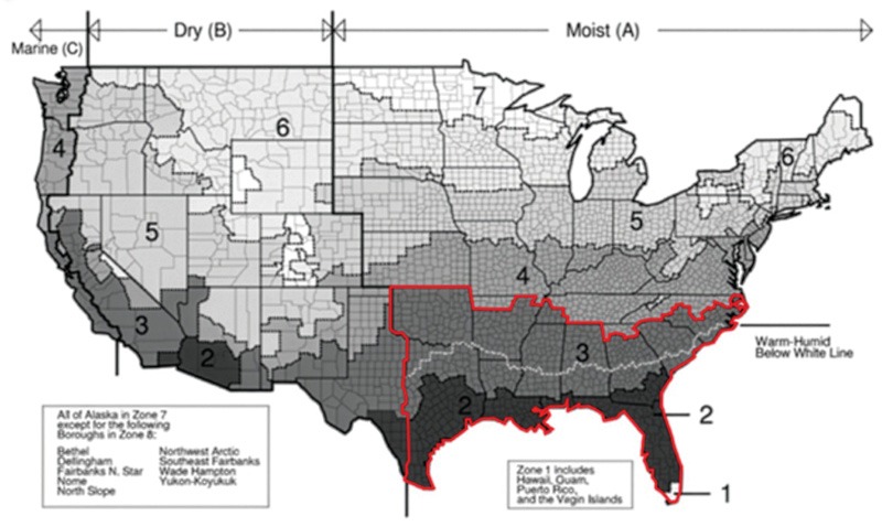 - In Climate Zones 1A, 2A, and 3A, the code adds the following requirement: