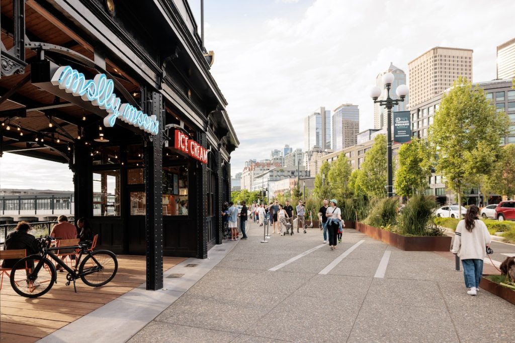Set along Seattle’s reimagined central waterfront, the Molly Moon’s Waterfront location brings the famous, locally made ice cream to the restored Washington Street Boat Pergola.